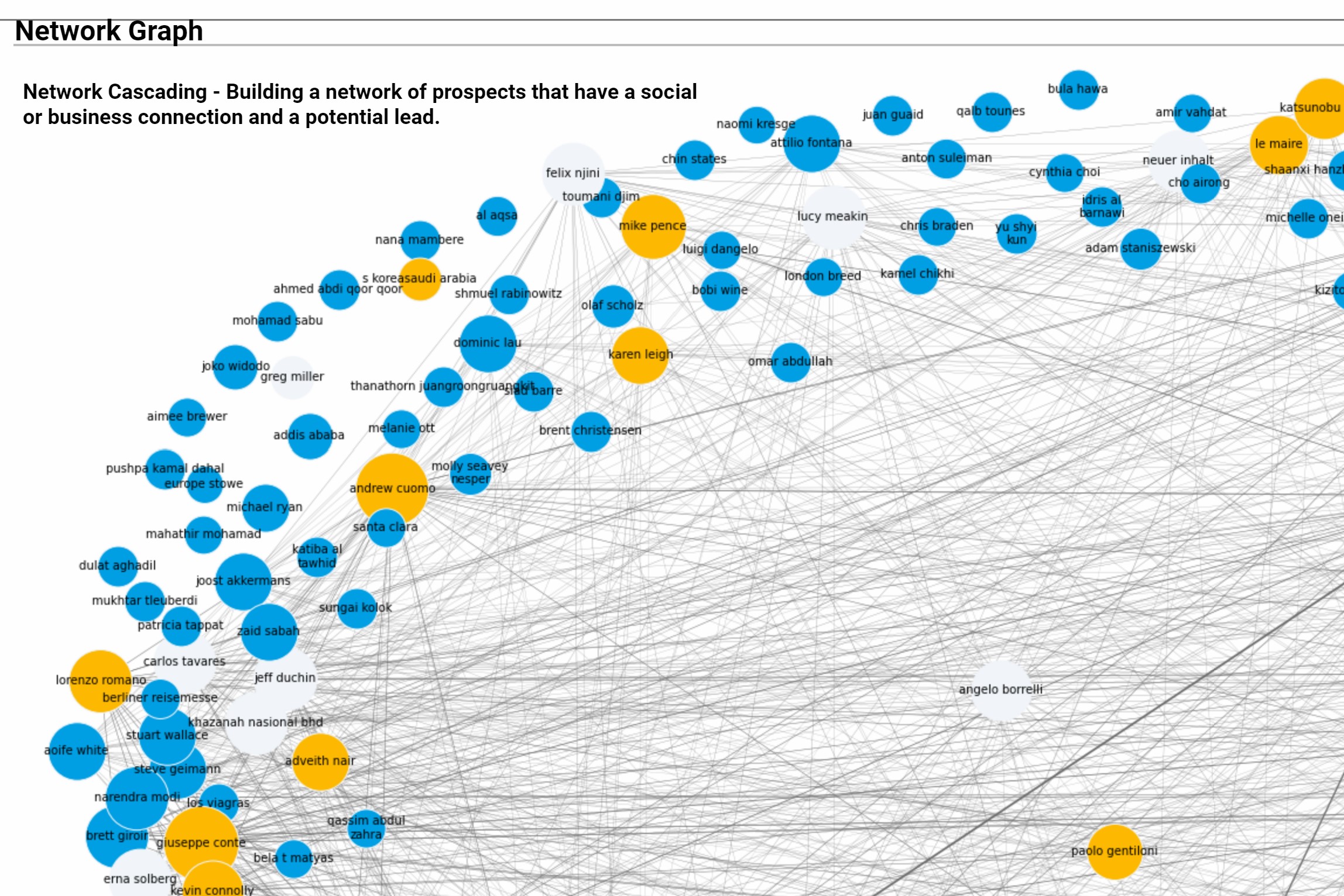 Network Graph: Networkx – Network Cascading Algorithm to simulate link associations in the network graph of prospects that have a social or business connection and a potential lead.